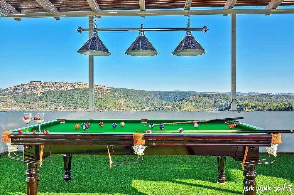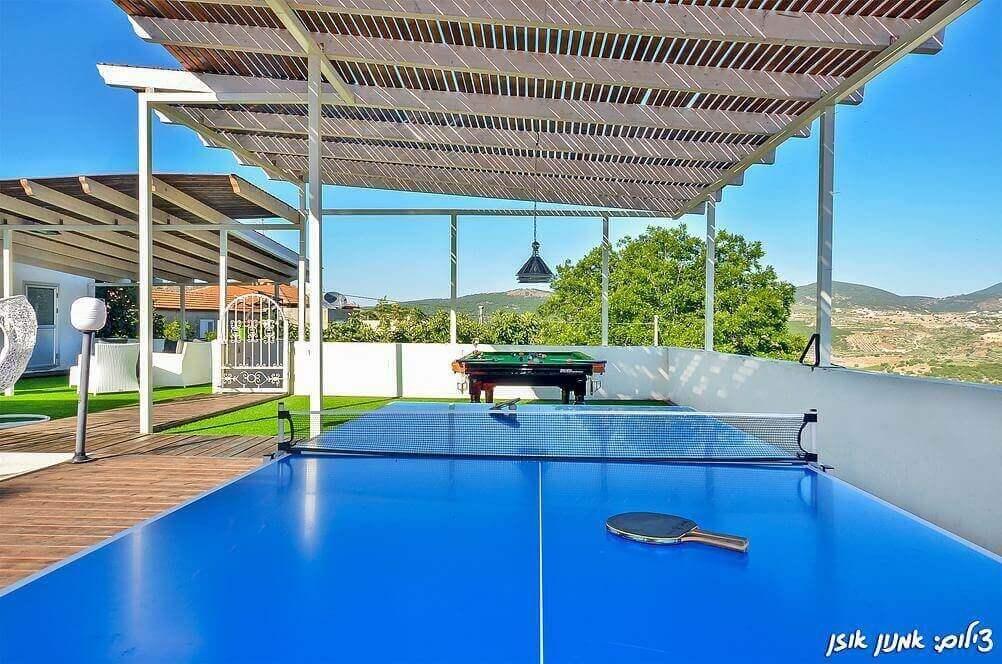 הוילה כולללת מתחם חיצוני גדול עם בריכת שחייה גדולה עם מפל, ג'קוזי ספא מחומם, שולחן סנוקר ופינג פונג, עמדת מנגל מאובזרת ועוד.