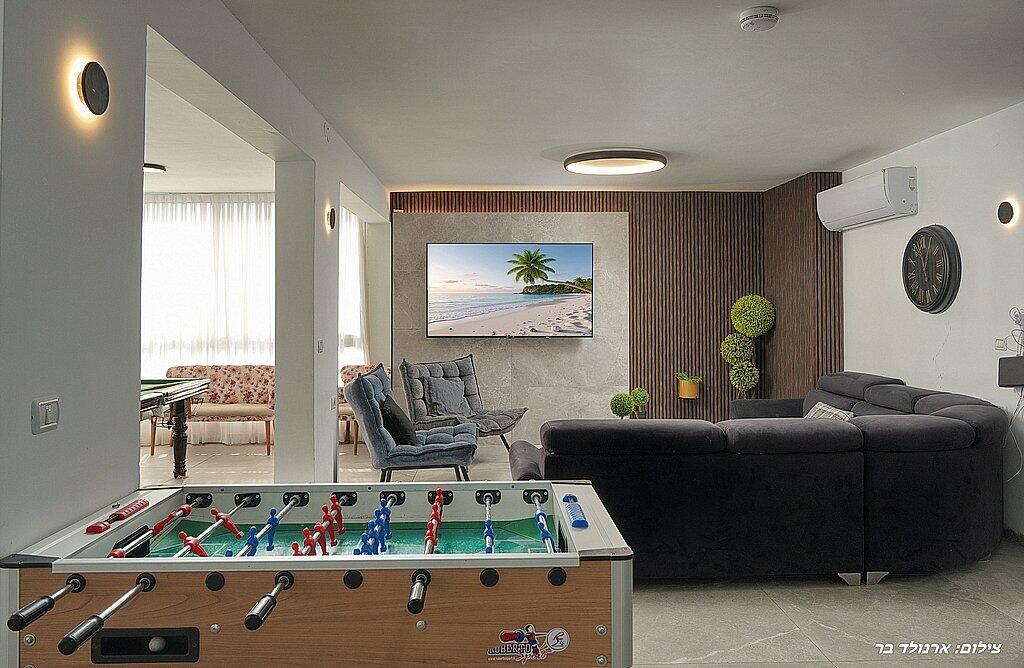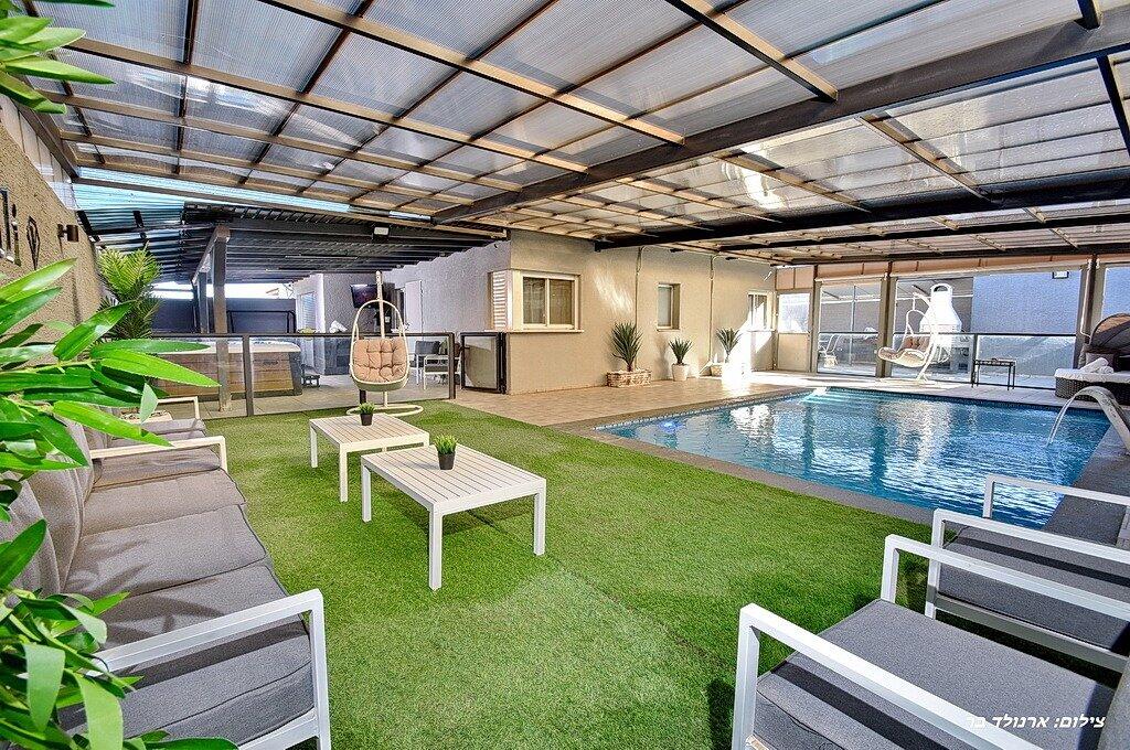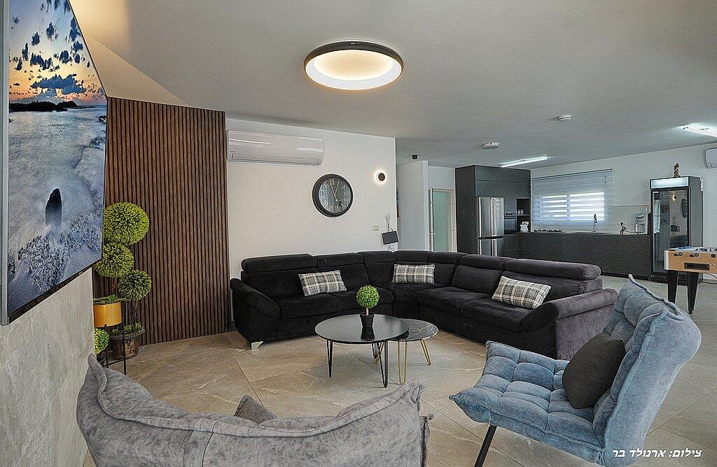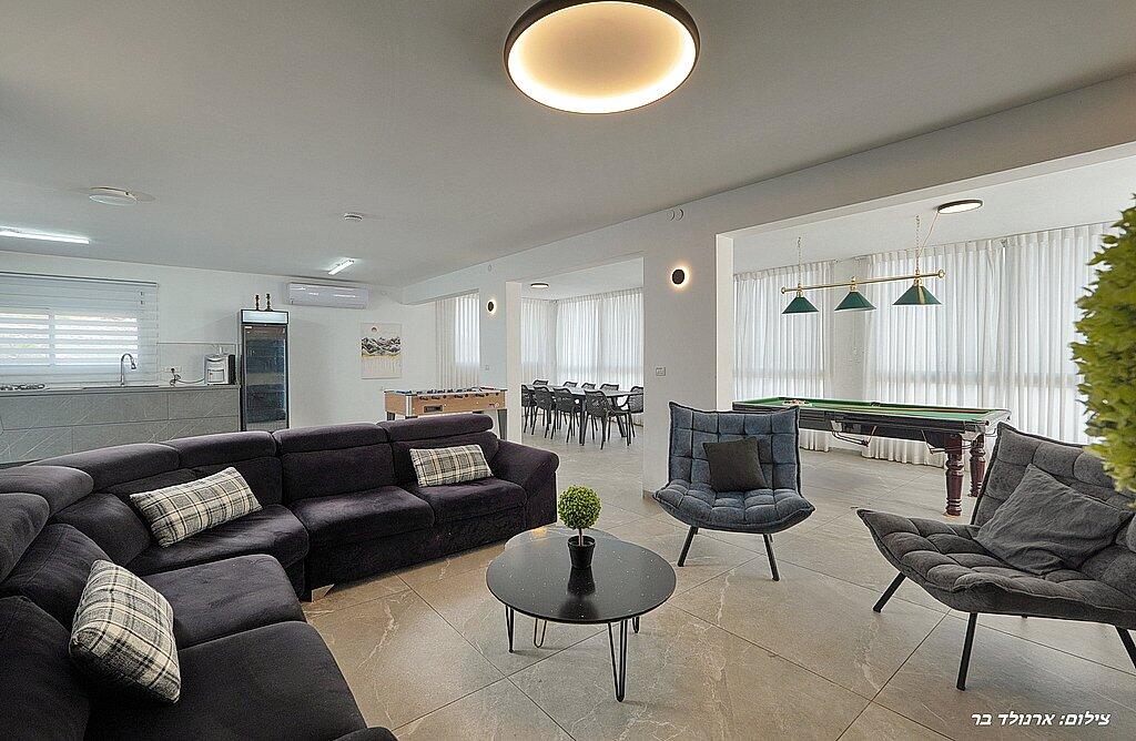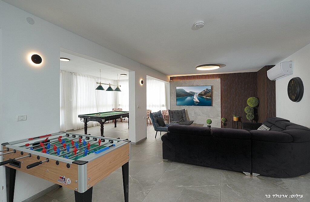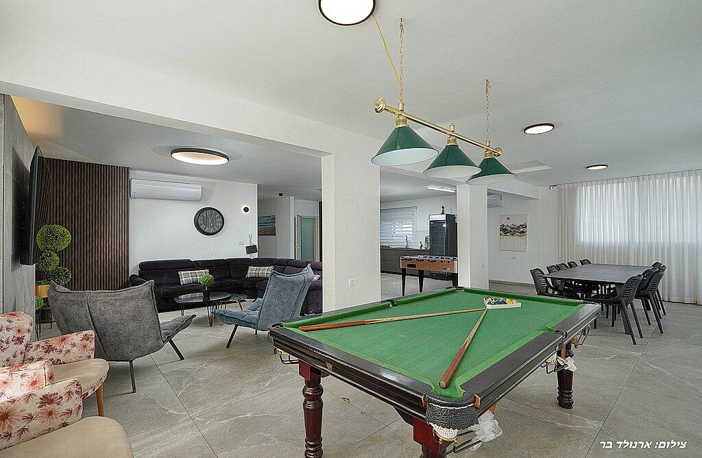 במתחם הפנימי תוכלו ליהנות מ6 חדרי שינה מפנקים, סלון גדול, מטבח מאובזר, פינת אוכל וחדר פנאי עם משחקי שולחן.