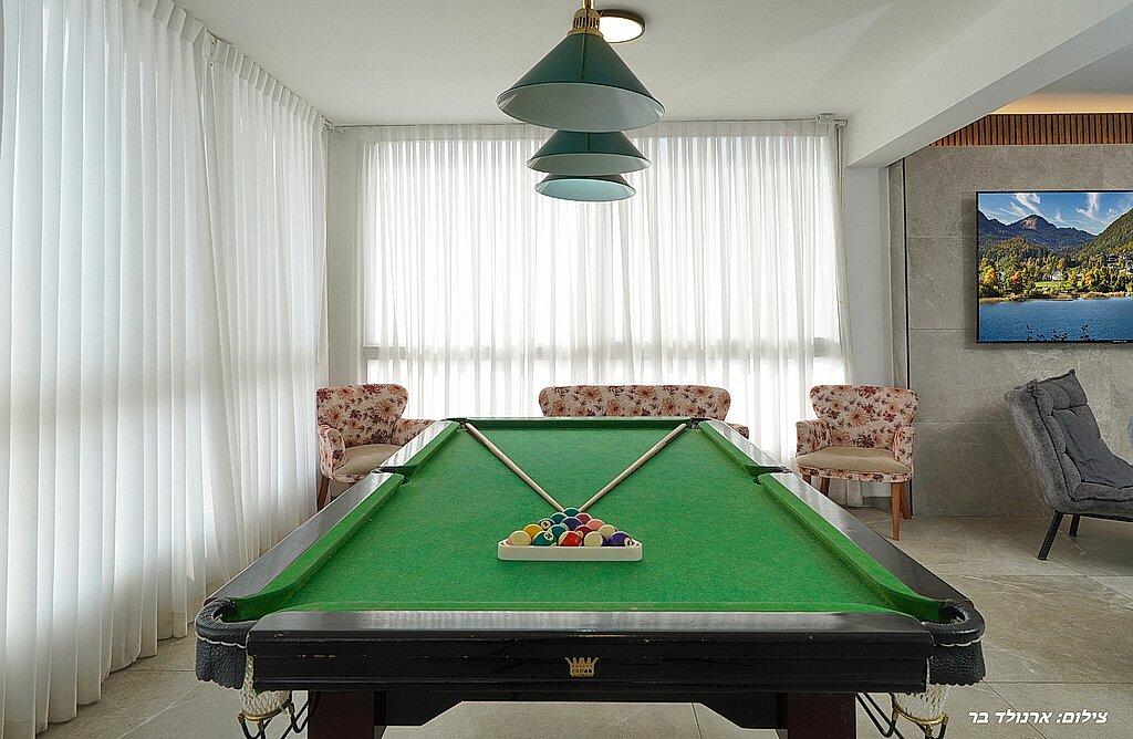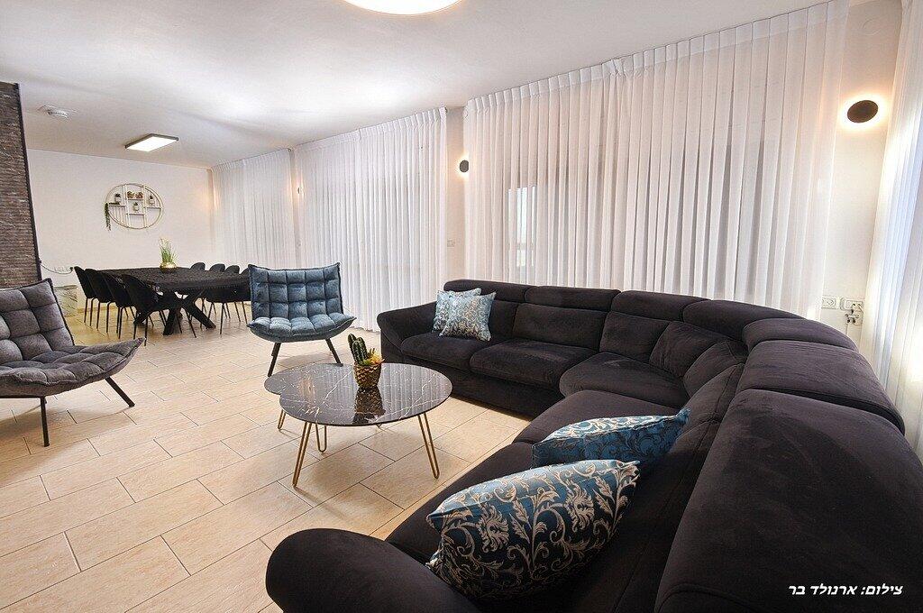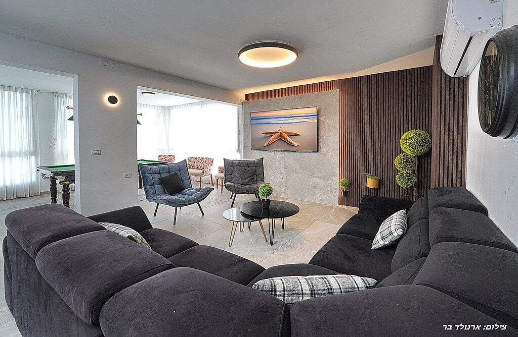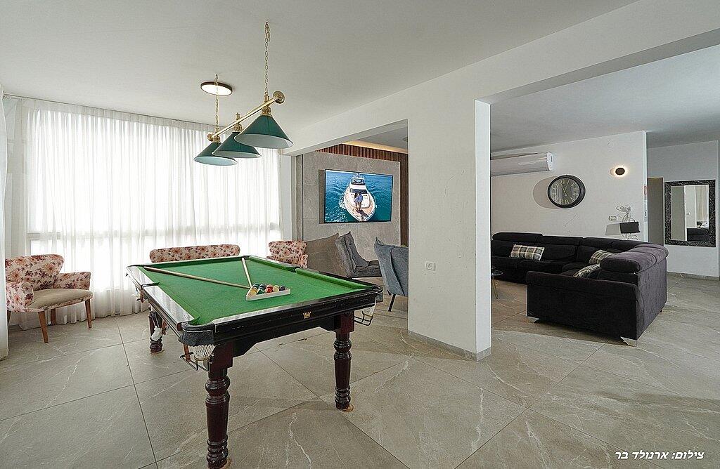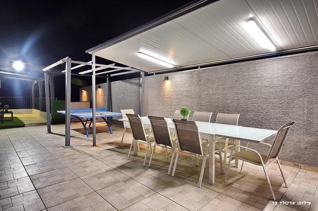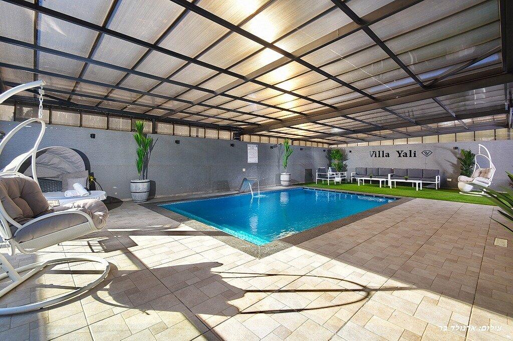 במתחם הפנימי תוכלו ליהנות מ6 חדרי שינה מפנקים, סלון גדול, מטבח מאובזר, פינת אוכל וחדר פנאי עם משחקי שולחן.