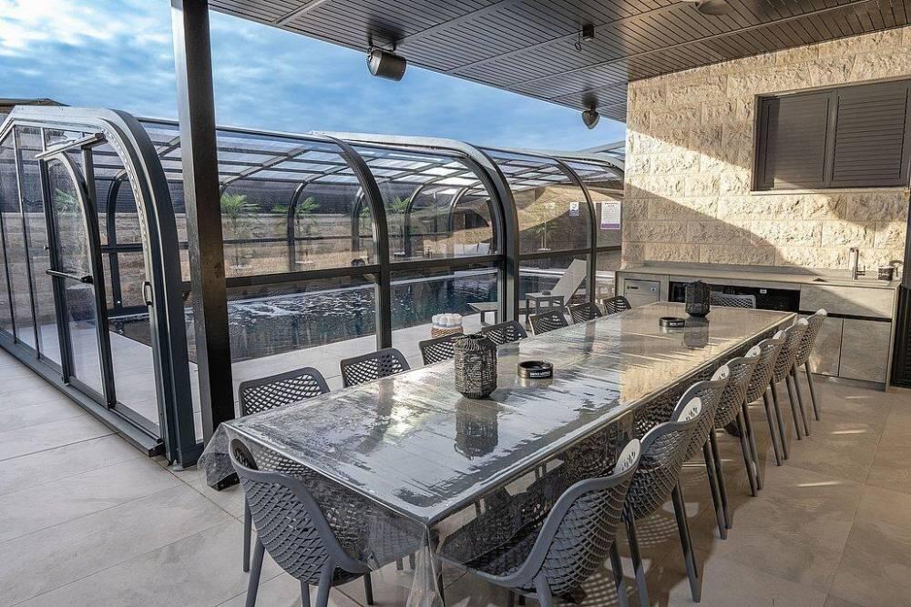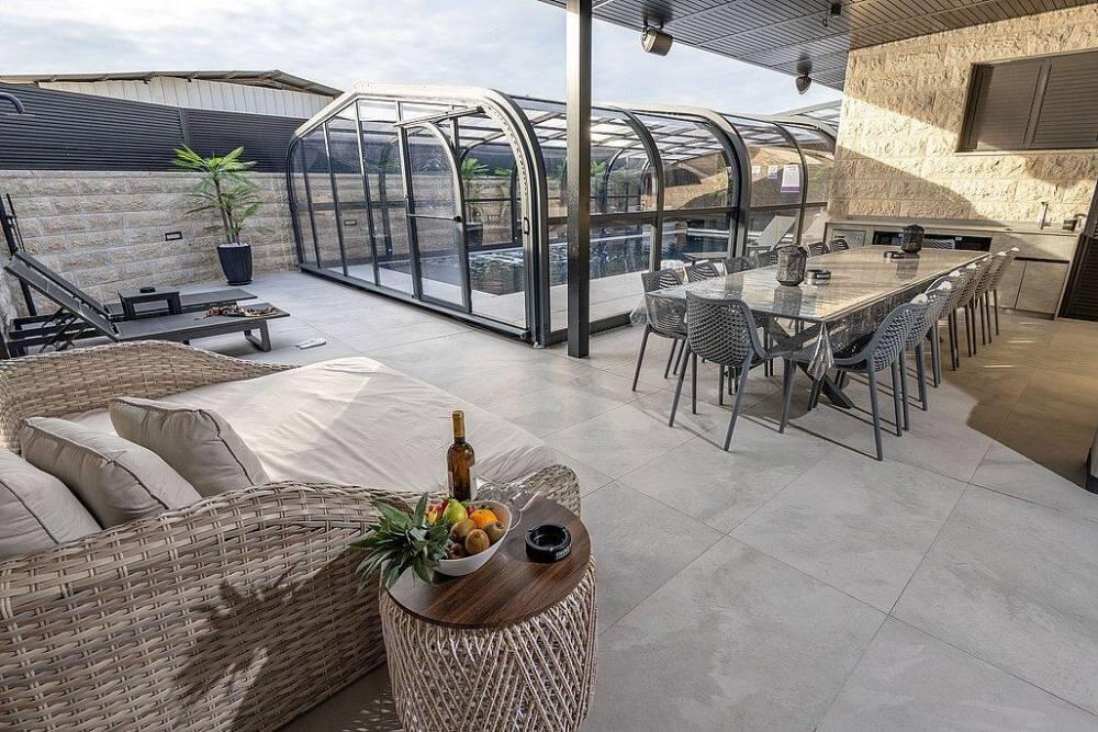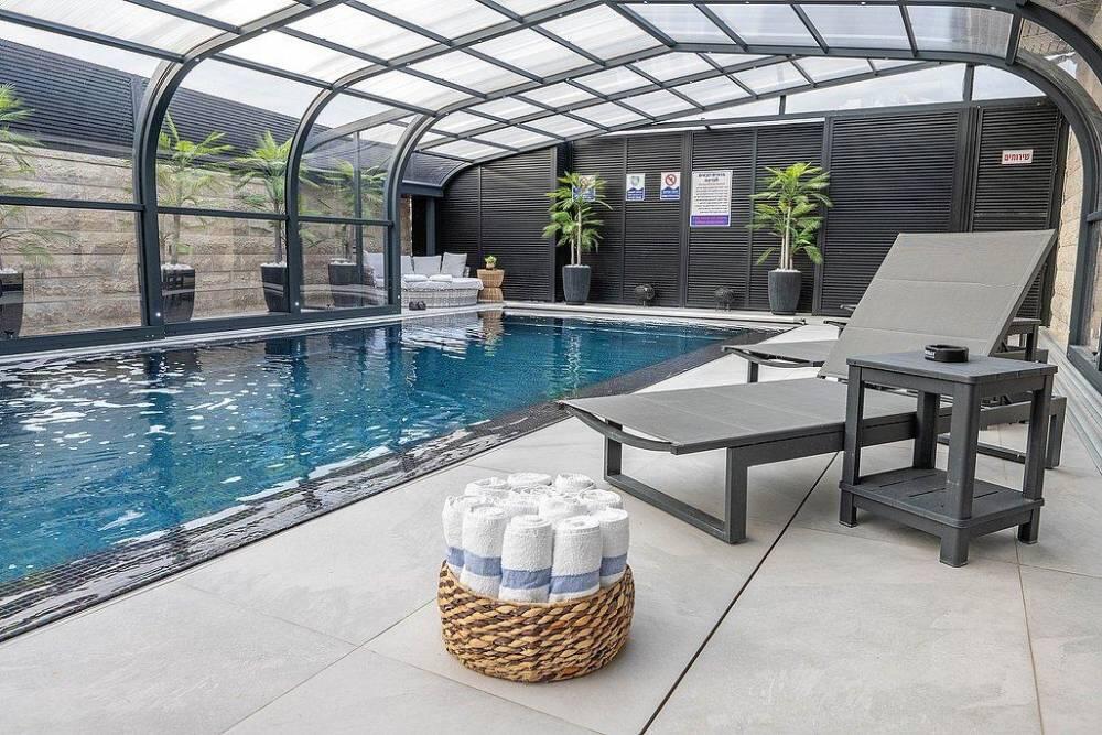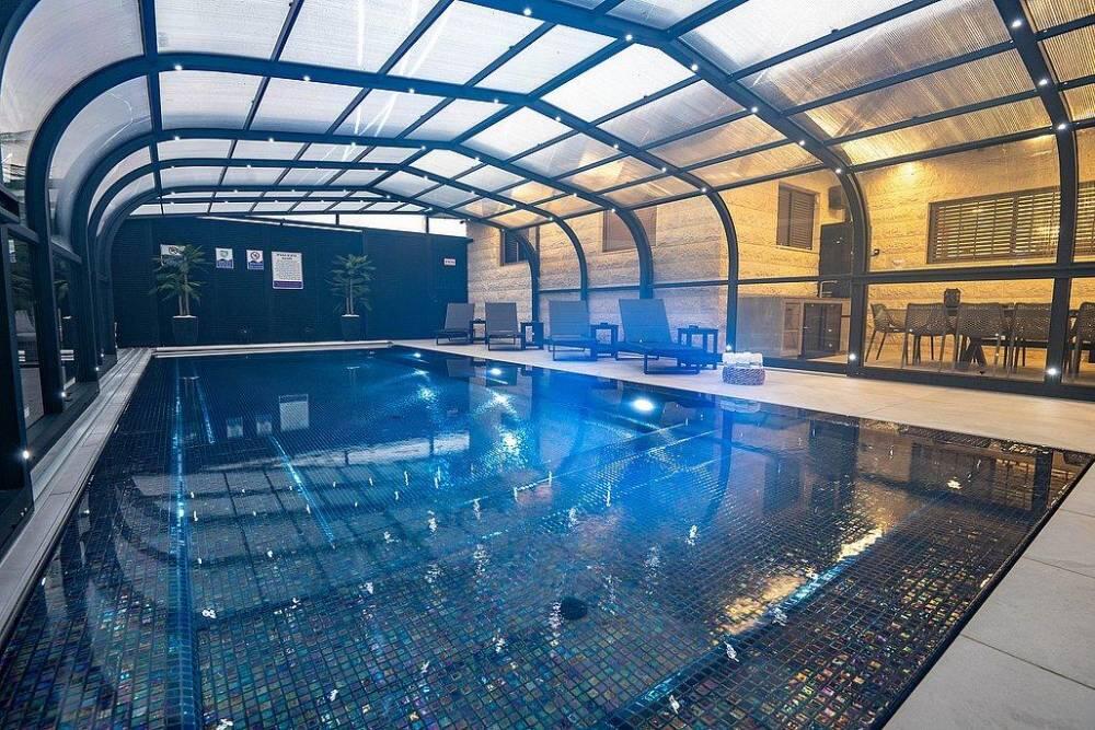 נוסיף כי - בריכת השחיה מחוממת ומקורה בקירוי מיוחד עבור עונת החורף