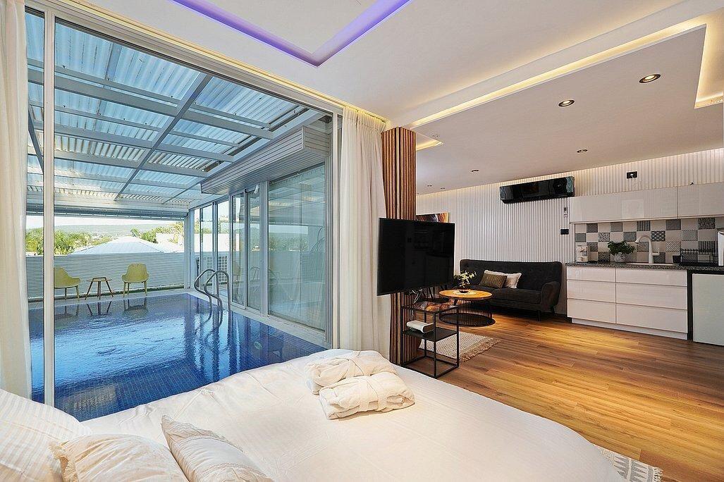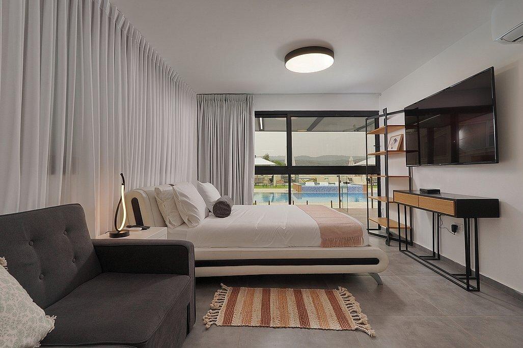 5 מתוך הסוויטות מתאימות לזוגות ומשפחות ובהן קומת גלריה לילדים ואבזור מתאים. סוויטה נוספת מיועדת לזוגות בלבד , לכל סוויטה ישנה בריכה פרטית ( רובן מחוממות ומקורות בהתאם לעונה) ,ג'קוזי גדול, מסך צפייה, מכונת אספרסו ועוד.. המתחם המרכזי בכל סוויטה הינו מתחם רחב ידיים ומפנק במיוחד המשקיף אל הנוף של הגליל