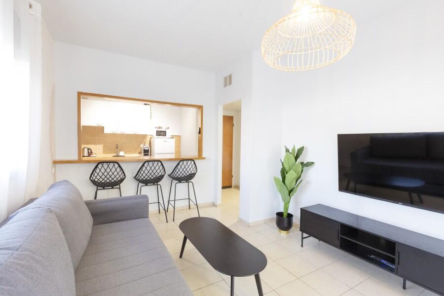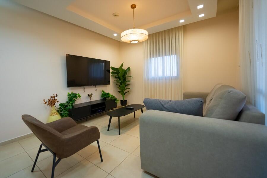 סלון מרווח עם מסך TV וחבילת ערוצים Yes