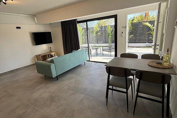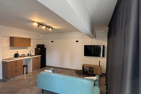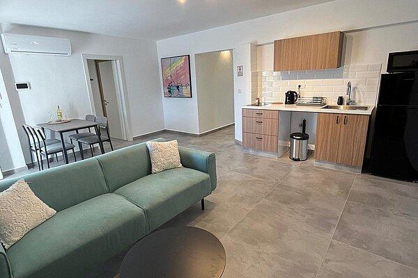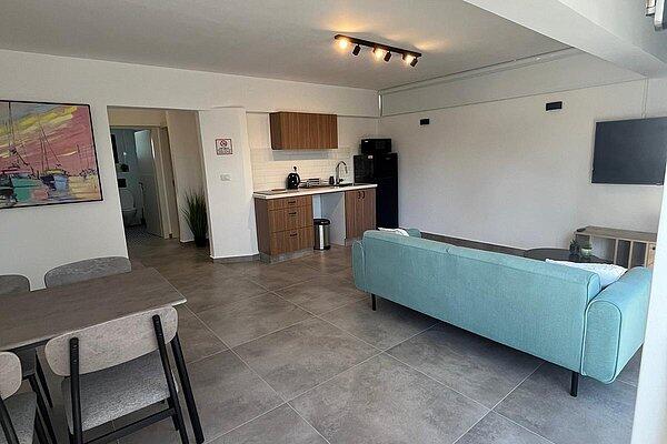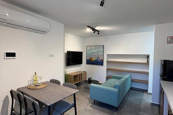 בכל דירה 2 חדרי שינה עם מיטה זוגית בכל חדר ארון בגדים וסמארט Tv כולל כבלים של Hot ומיזוג אוויר, WiFi . בנוסף, בכל דירה ישנו סלון עם סמארט Tv כולל כבלים של Hot, שירותים ומקלחת, מטבח מאובזר הכולל: מקרר, מיקרוגל, כיריים חשמליים פינת אוכל משפחתית ומערכת ישיבה חיצונית.