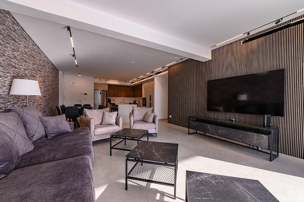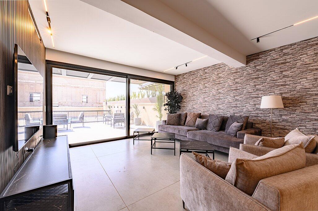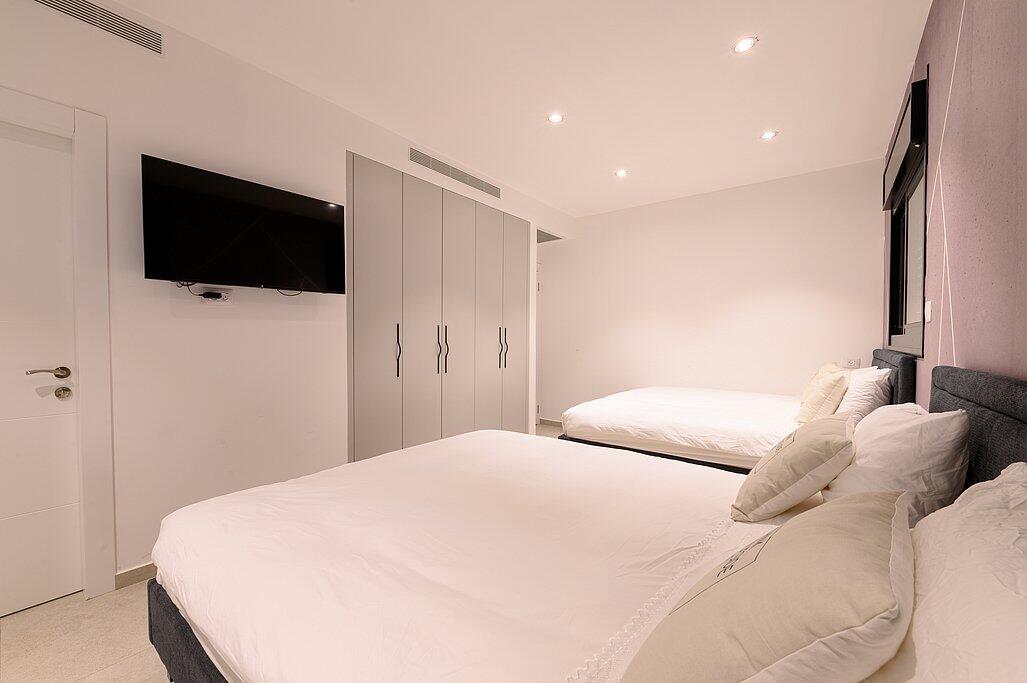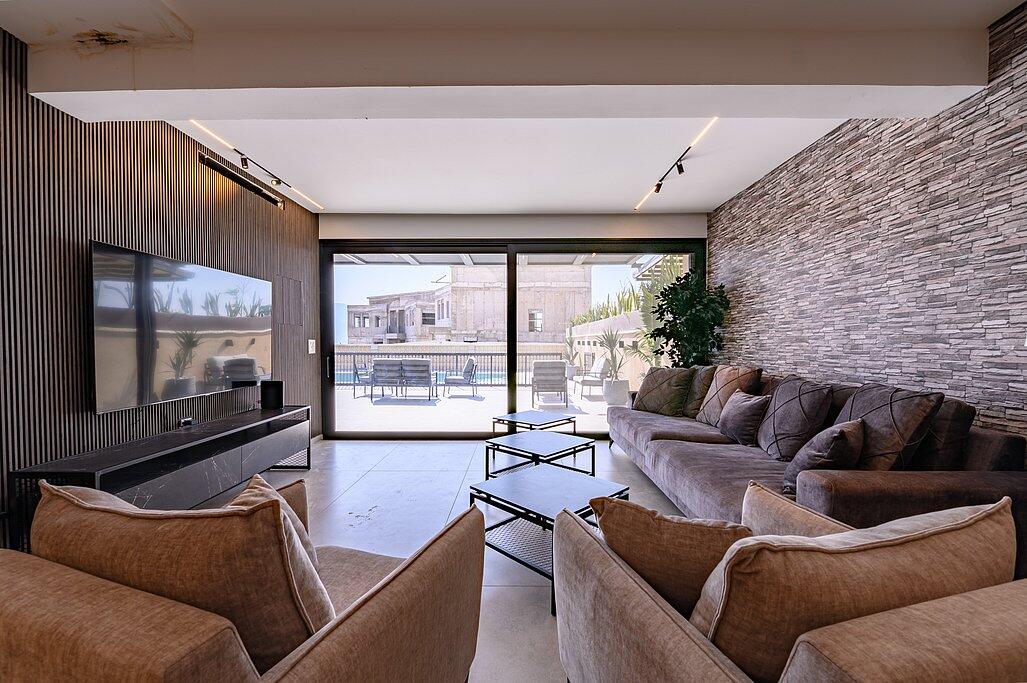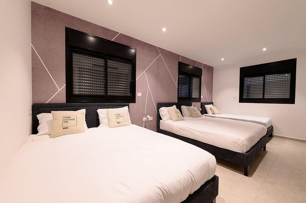 המתחם הפנימי כולל סלון עם טלוויזיה חכמה, מטבח מאובזר, מיזוג אוויר ו-Wi-Fi חופשי. כל חדר שינה מצויד במיטה זוגית, טלוויזיה ומיזוג אוויר