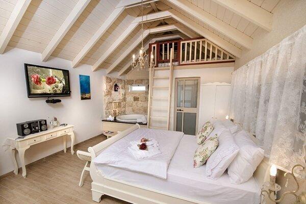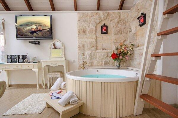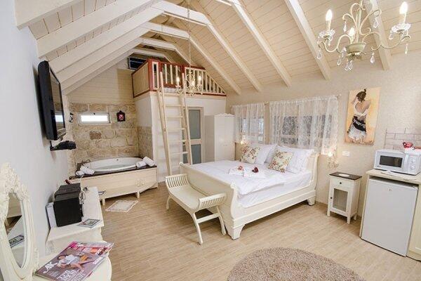 הסוויטות במתחם מעוצבות בקפידה וכוללות ג'קוזי פרטי, פינות ישיבה נעימות, מרפסות פרטיות וגינות נוי קסומות המעניקות תחושת רוגע ושלווה. במתחם החוץ תיהנו מבריכת שחייה גדולה ומחוממת בעונת החורף, ג'קוזי ספא מקורה, מתחם ברביקיו ומדשאות רחבות