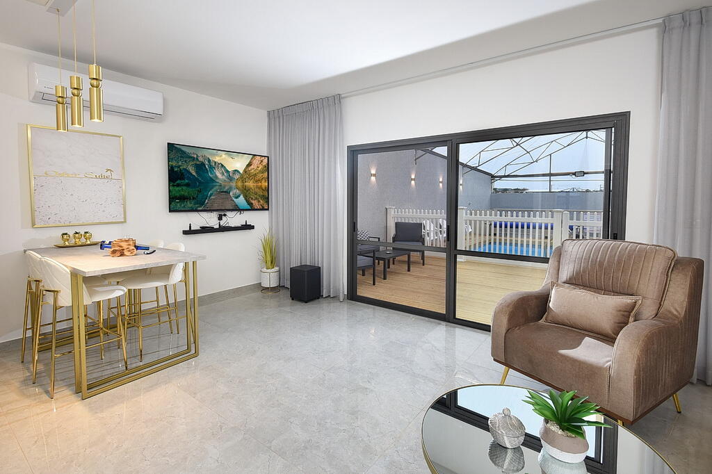 אם אתם מחפשים סוויטה יוקרתית ומפנקת לזוג או משפחה בגליל המערבי, הרשו לנו להציג בפניכם את סוויטת האושר. הסוויטה מעוצבת ביוקרתיות רבה, כוללת חדר שינה מפנק, מטבח מאובזר, סלון עם מסך צפייה ויציאה ישירות למתחם הבריכה והספא המפנק. סוויטת האושר מתאימה לזוג או משפחה (זוג עד 3 ילדים)