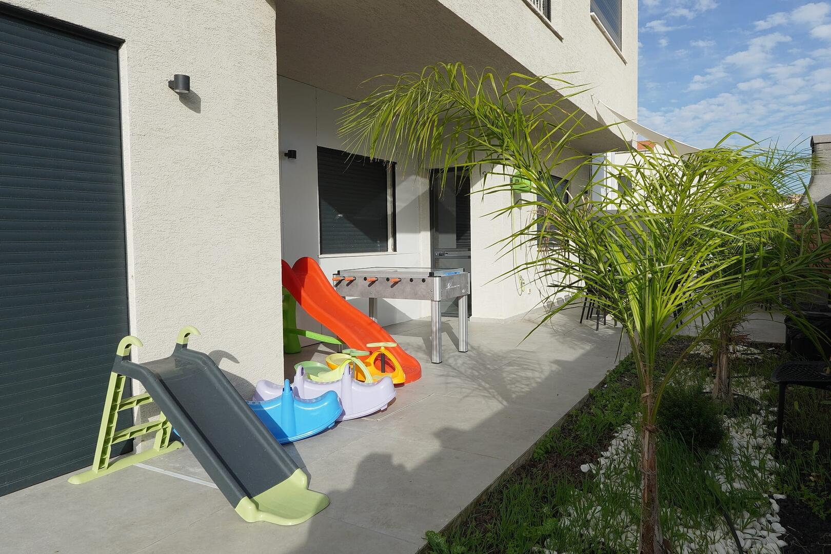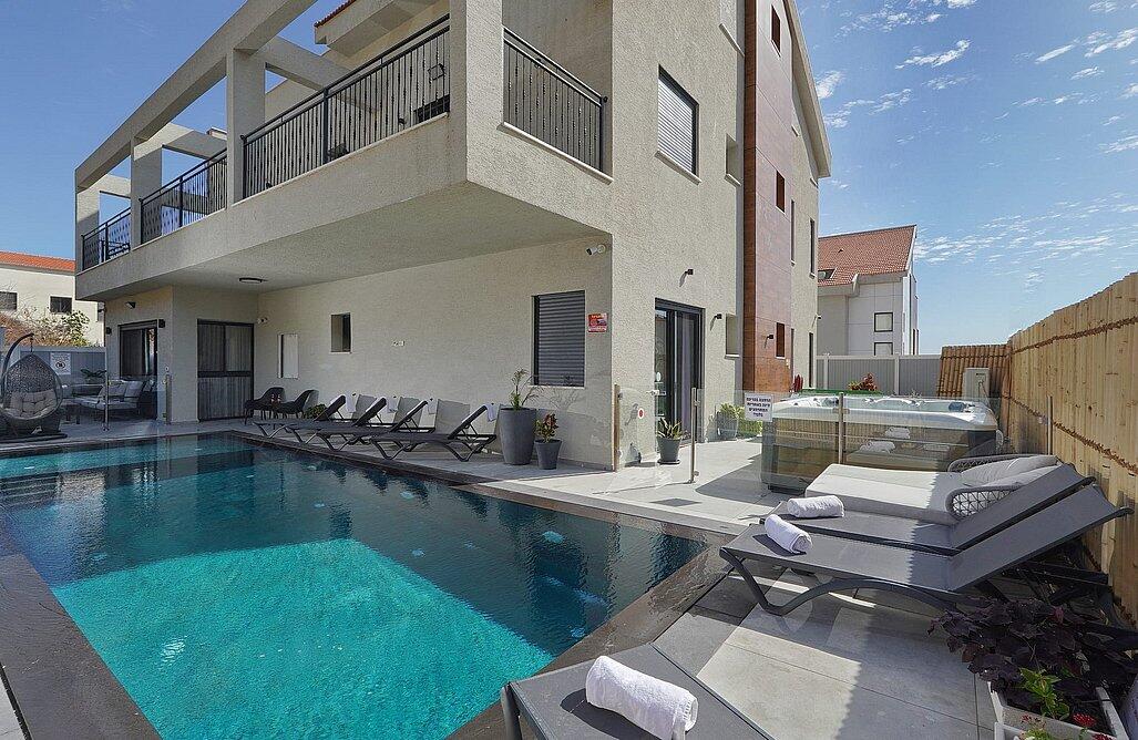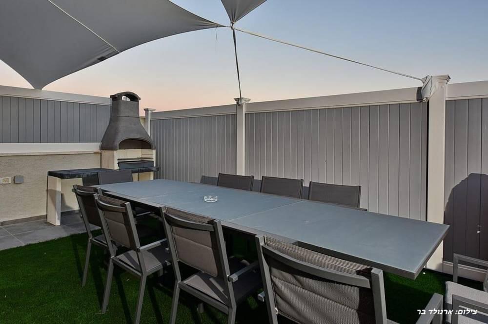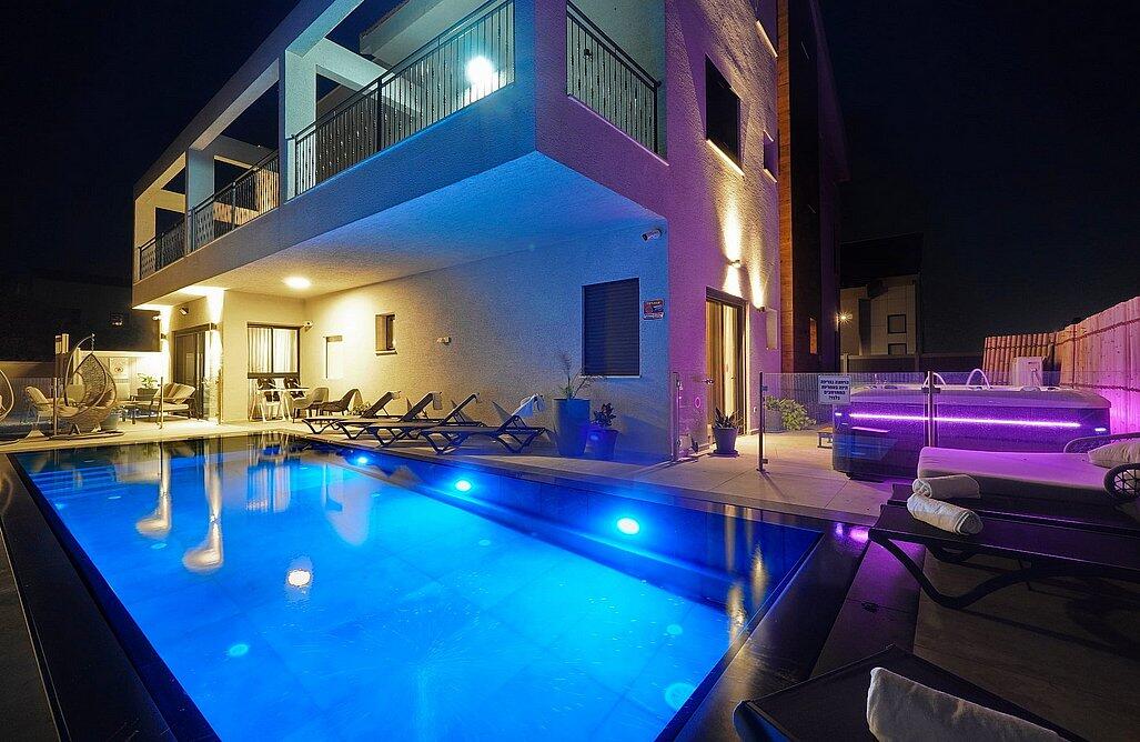 המתחם החיצוני המפואר כולל בריכה גדולה, משחקי שולחן ועמדת גריל – כל מה שצריך לבילוי בלתי נשכח.