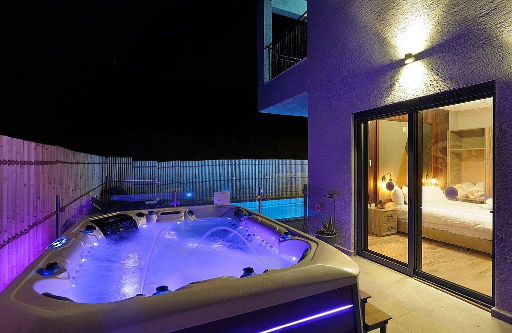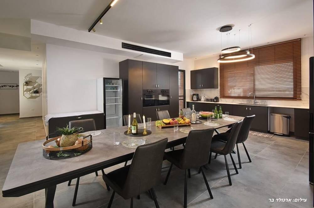 בוילה שני מפלסים מרווחים עם 8 סוויטות פרטיות, סלונים מאובזרים, מטבחים נוחים ופינות אוכל רחבות.