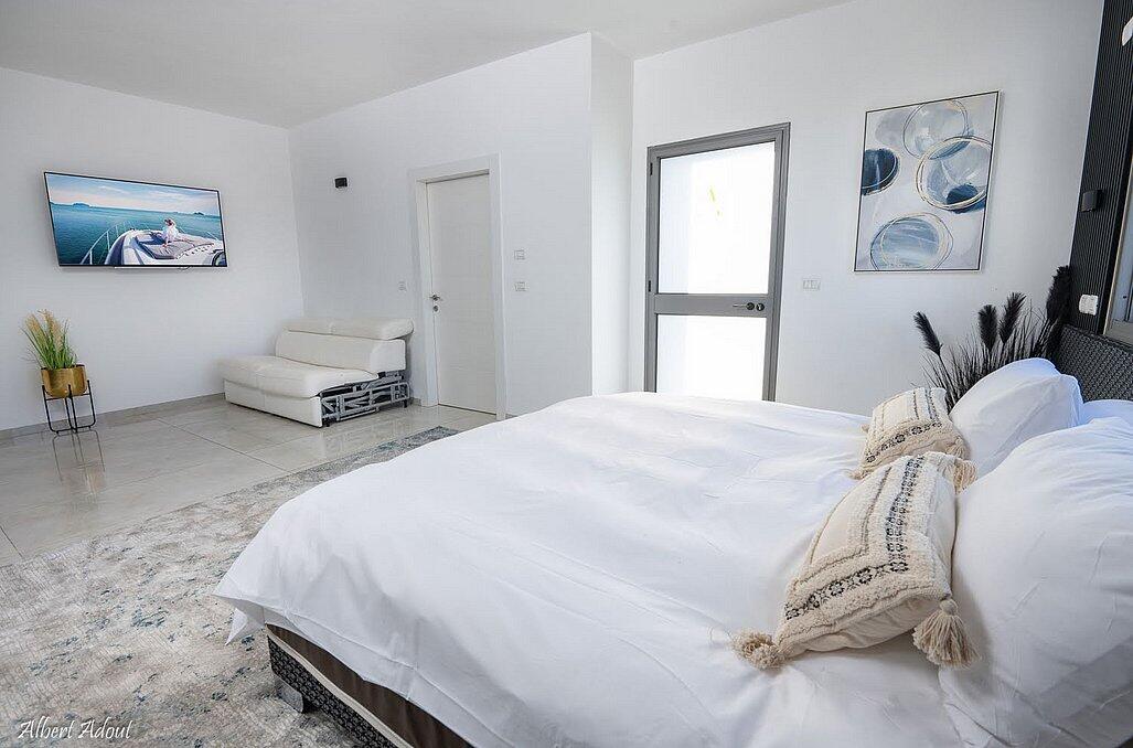 הוילה כוללת 5 חדרי שינה והיא מיועדת ללינה עד 20 אורחים.