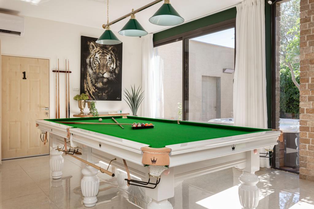וילה מעוצבת בקפידה, עם 5 חדרי שינה מרווחים, בריכת שחייה מחוממת, ג’קוזי ספא ושולחן סנוקר.