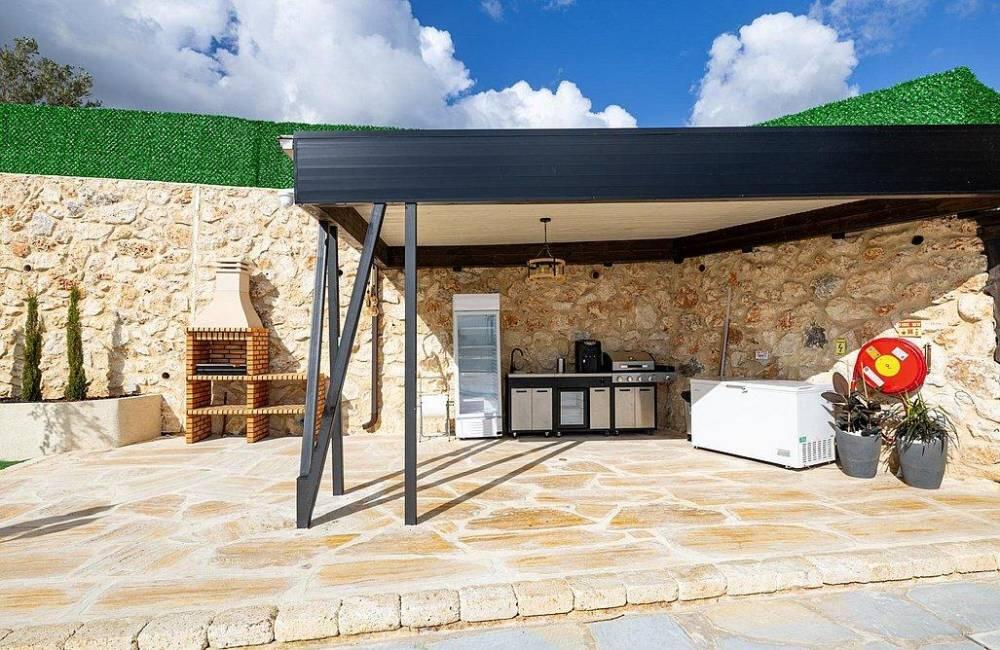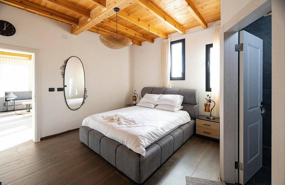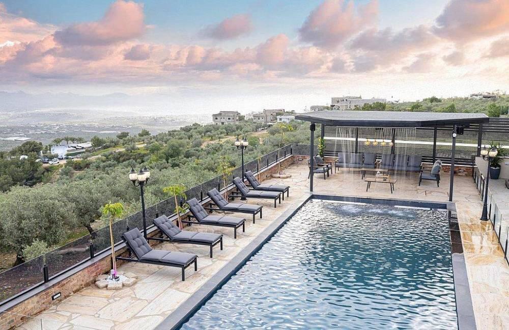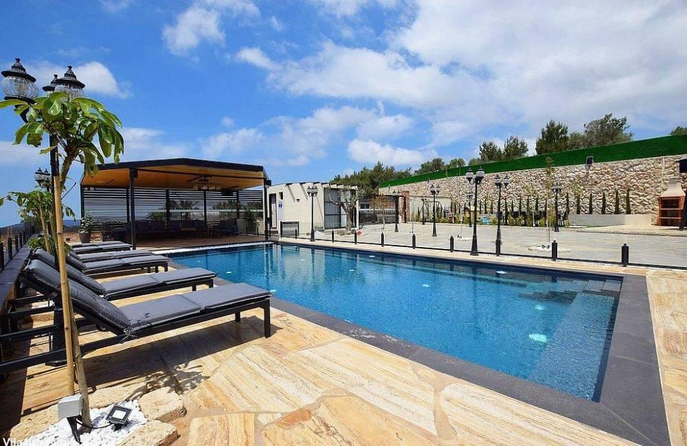הווילה כוללת 5 חדרי שינה עם חדרי רחצה פרטיים, סלון מרווח, מטבח מאובזר וחצר עם בריכה מחוממת.