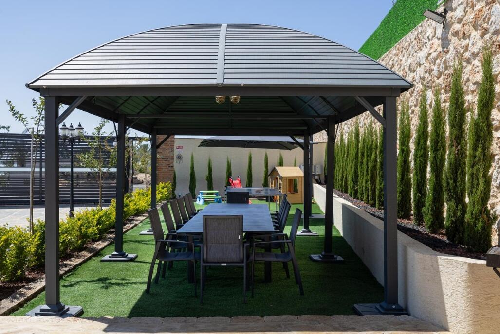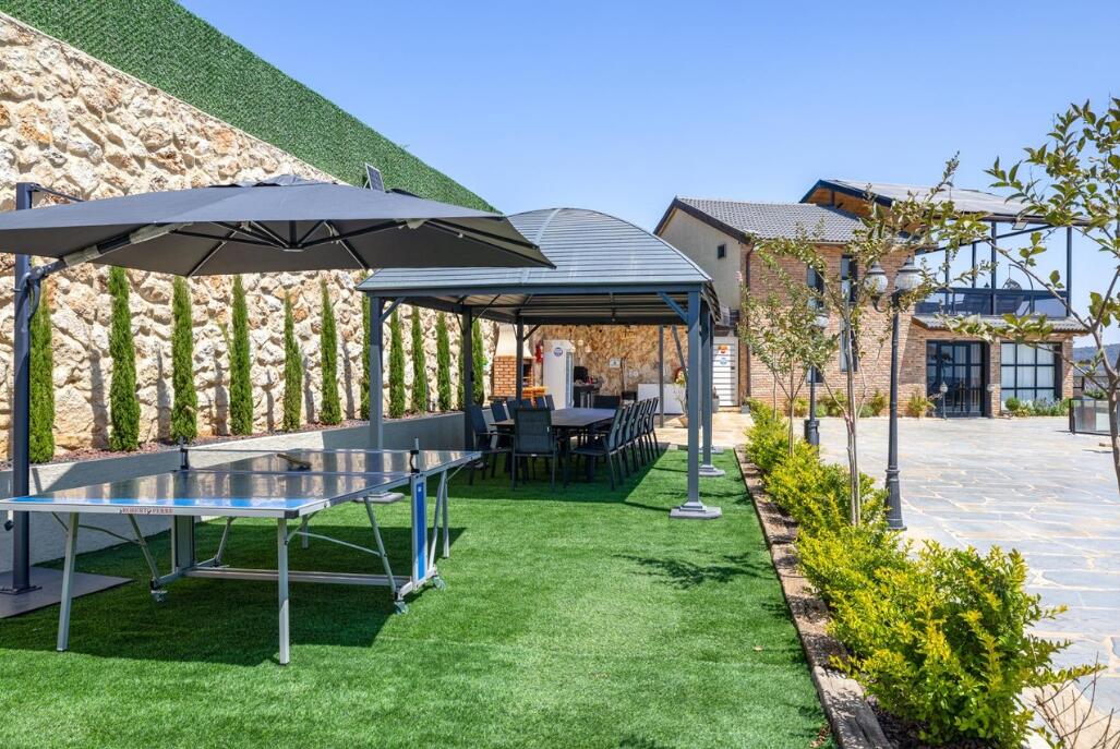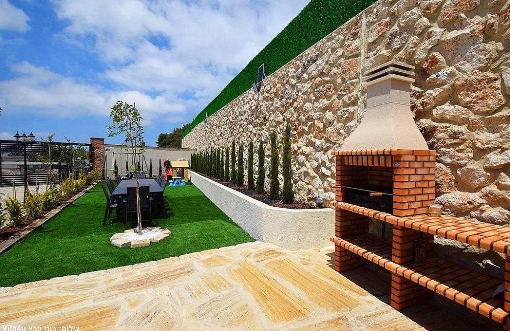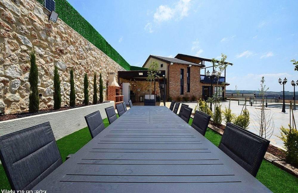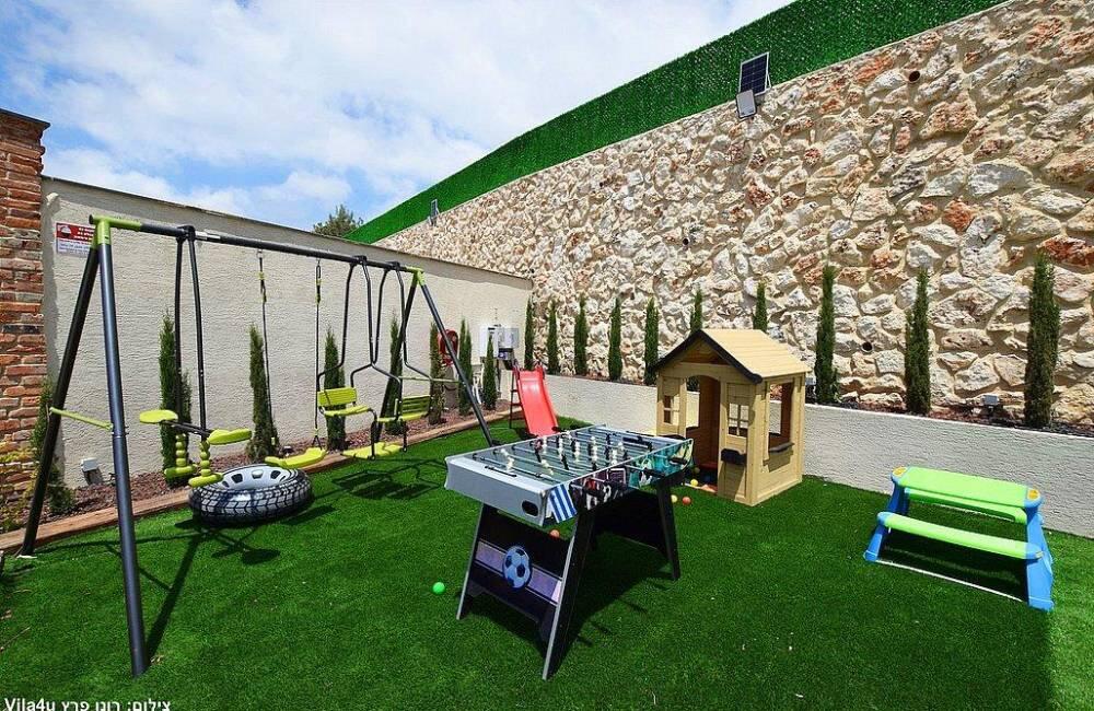 המתחם מציע גם מתקני משחק לילדים, פינות ישיבה ומטבח חוץ.