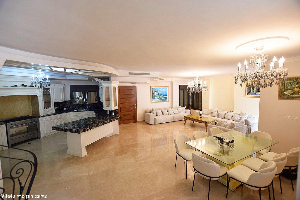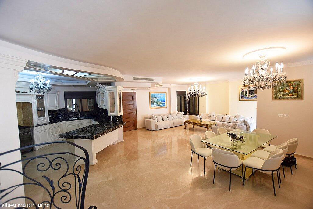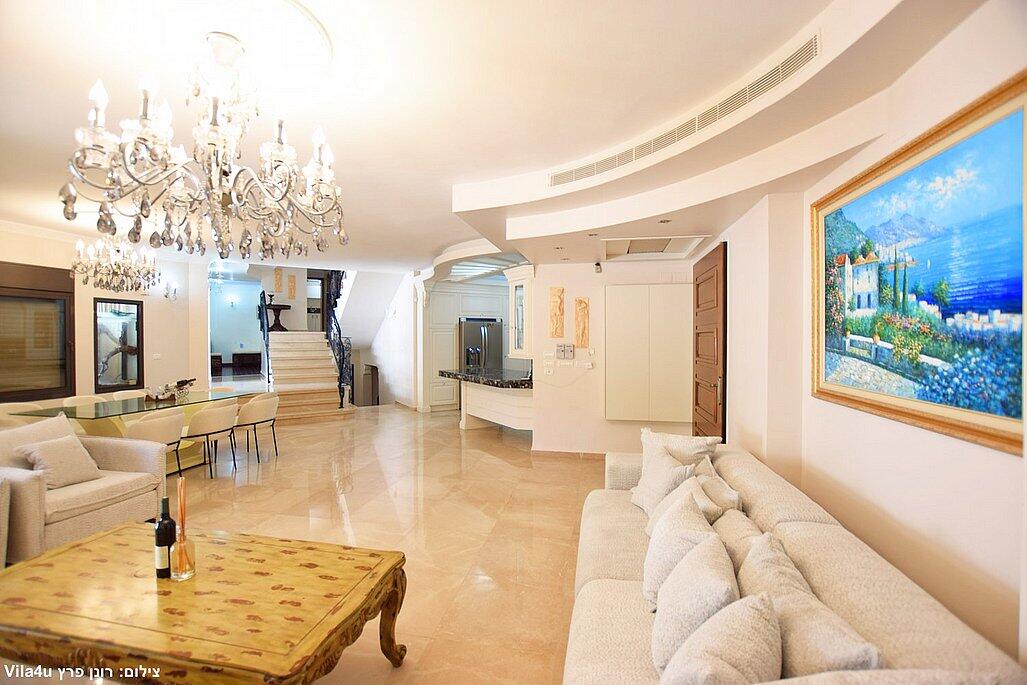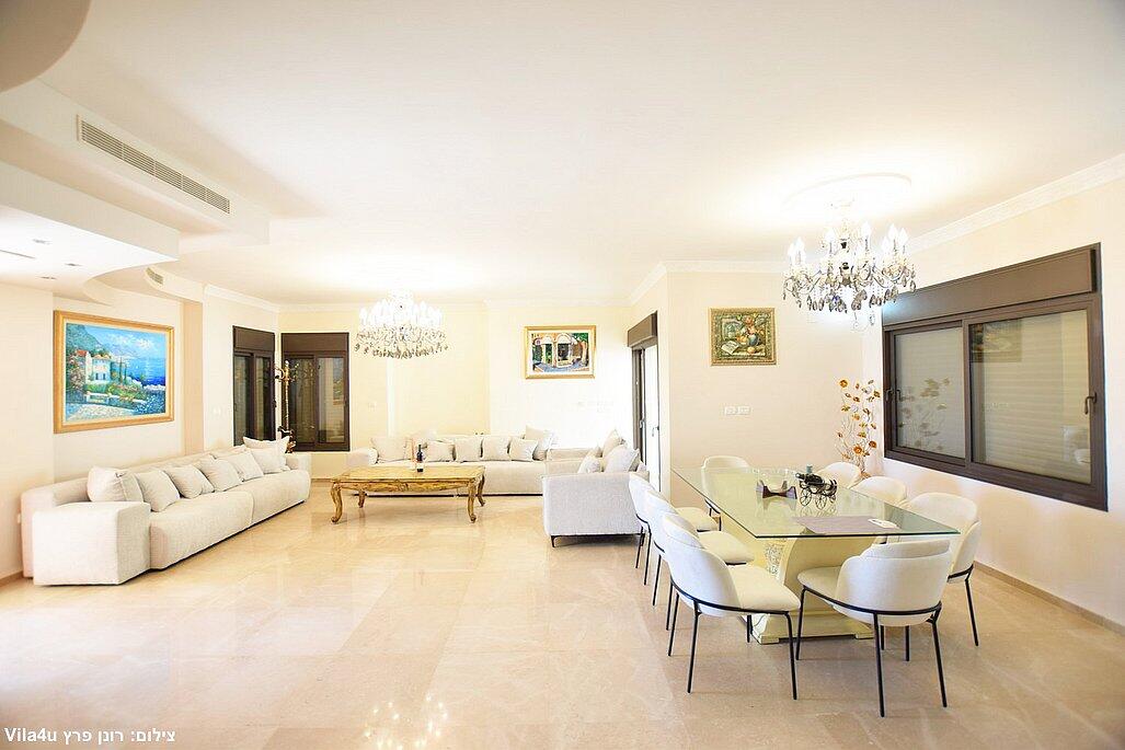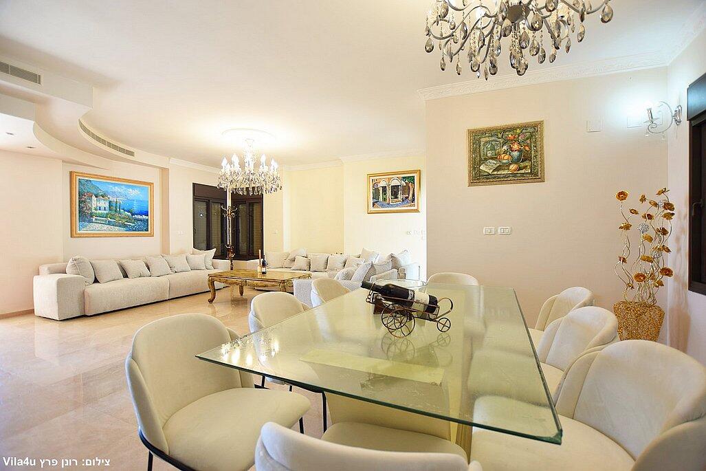הווילה כוללת חמישה חדרי שינה מאובזרים, סלון כפול עם מסכי טלוויזיה, מטבח מושלם לבישול ופינת אוכל רחבה.
