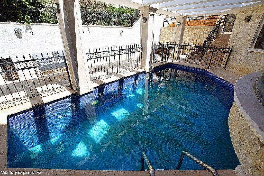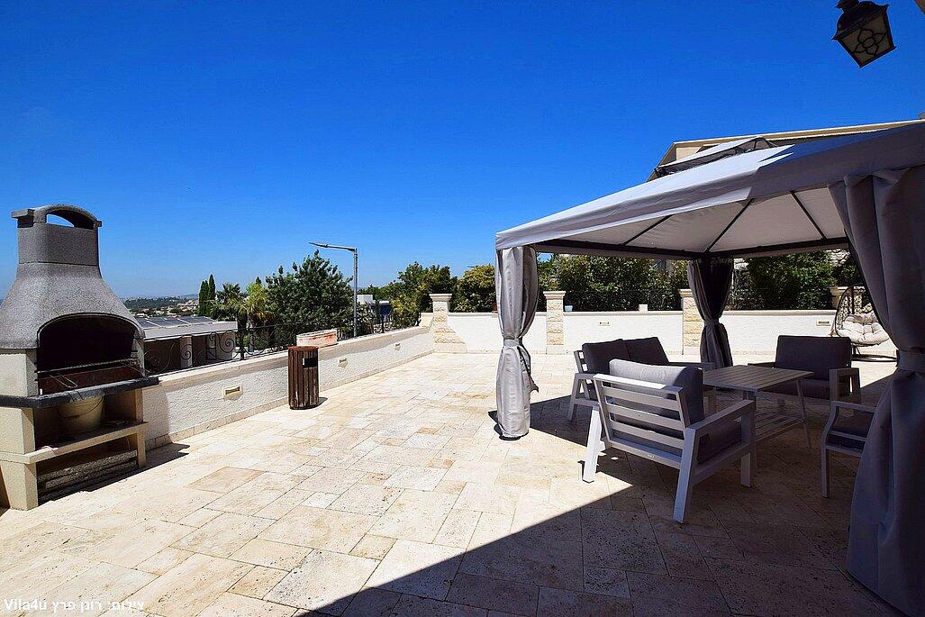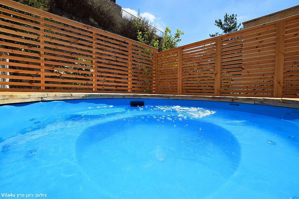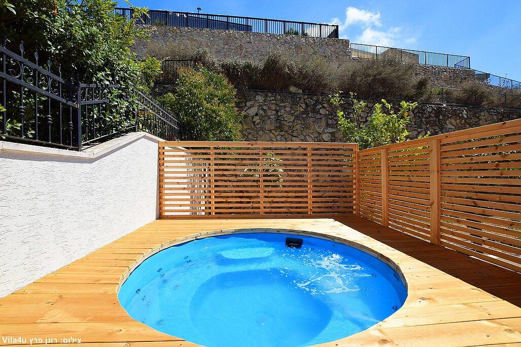 מתחם החוץ מפנק במיוחד – ג'קוזי ספא, בריכה פרטית, ריהוט גן איכותי ופינת ברביקיו.