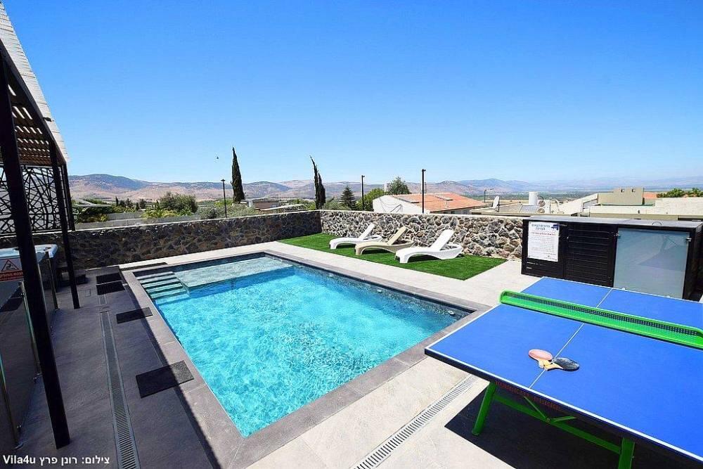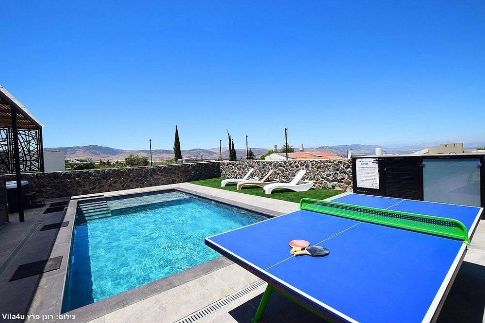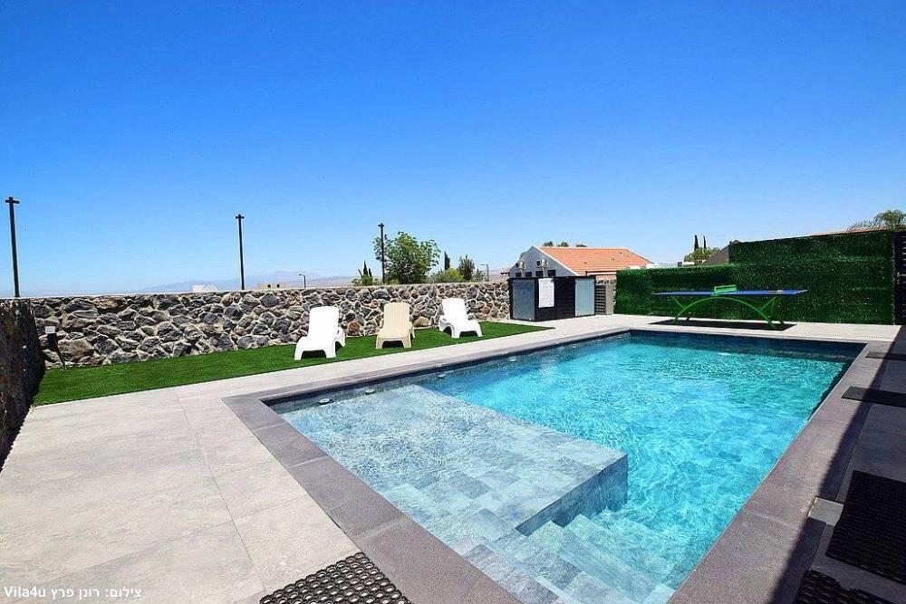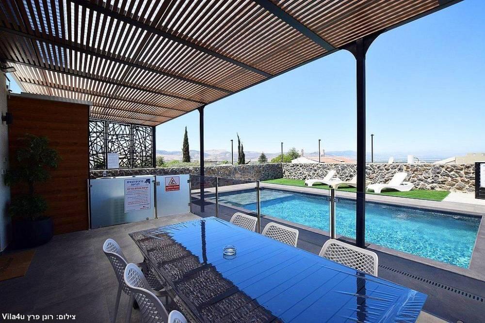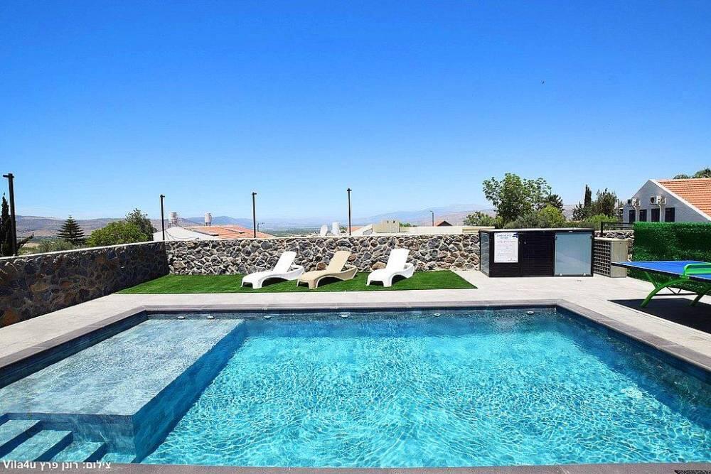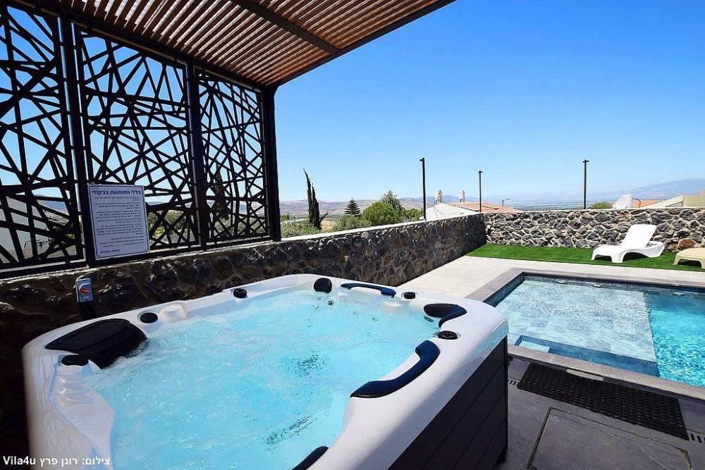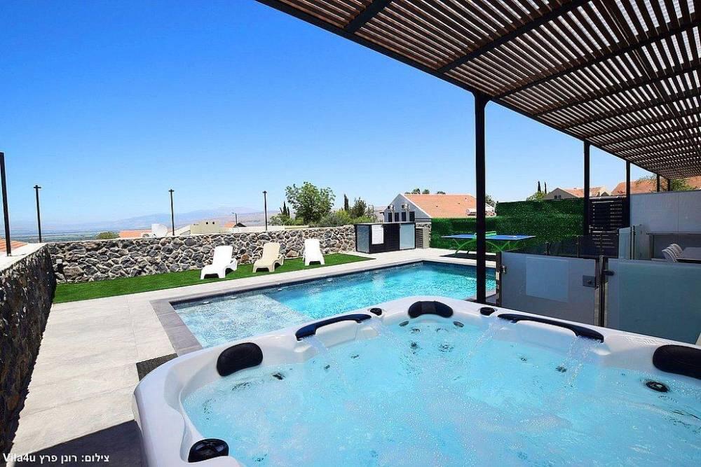 מאיורי ריזורט בגליל העליון – חופשה פרטית מול נוף עוצר נשימה לחרמון ורמת הגולן, בריכה מחוממת, ג׳קוזי ספא ופינות ישיבה חיצוניות - מושלם לאירוח משפחתי וטיולים עם ילדים בוילה סלון מרווח, חדרי שינה גדולים ומטבח מאובזר מבטיחים נוחות ושקט מלא לכל אורח.