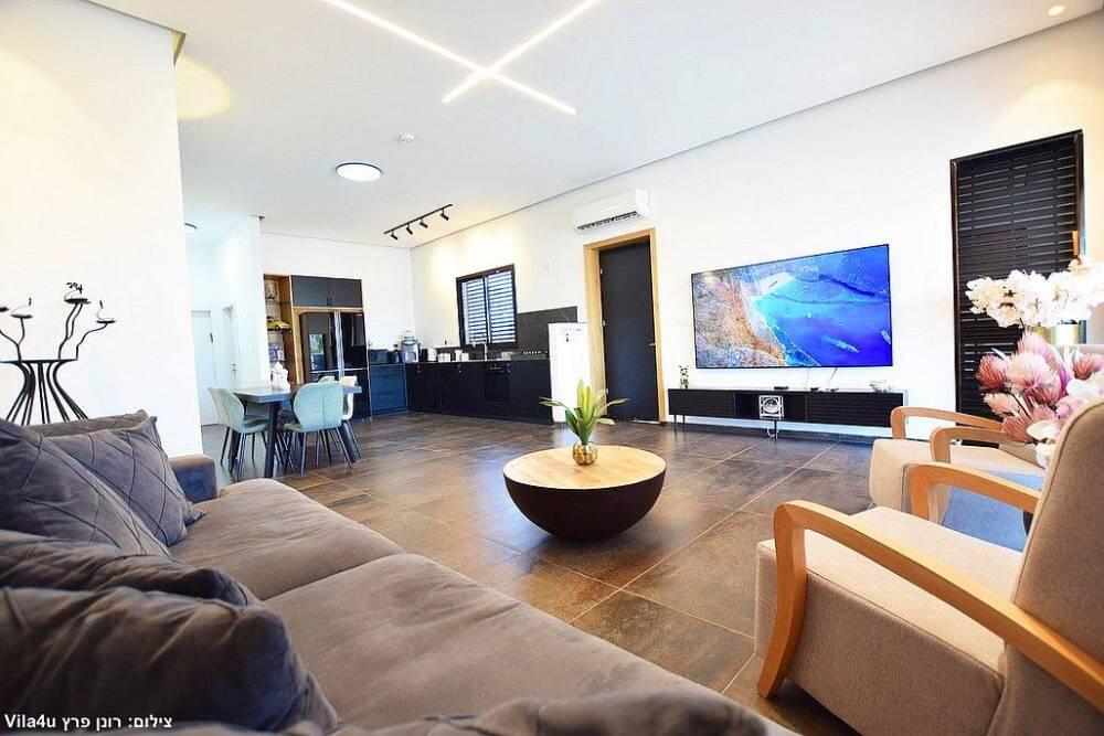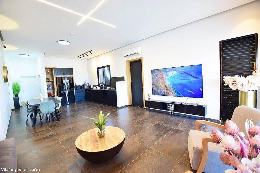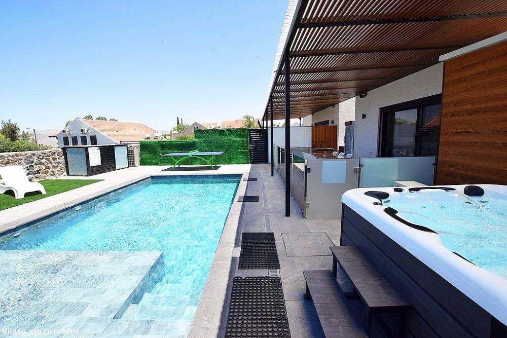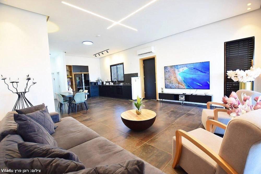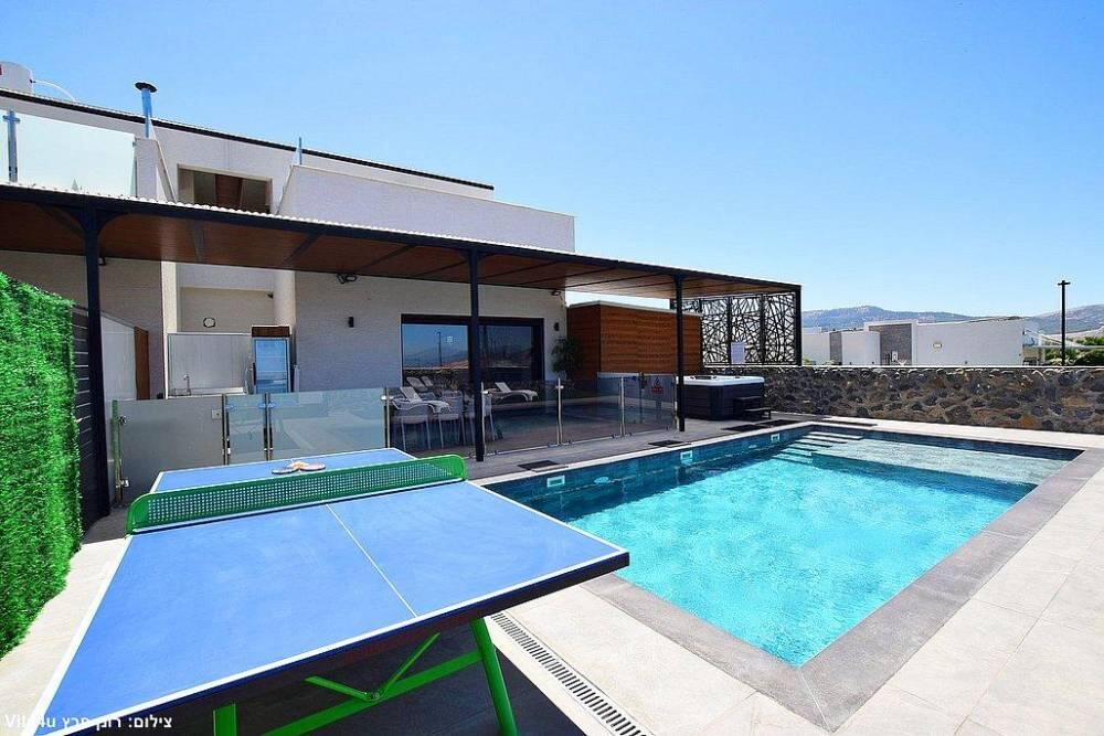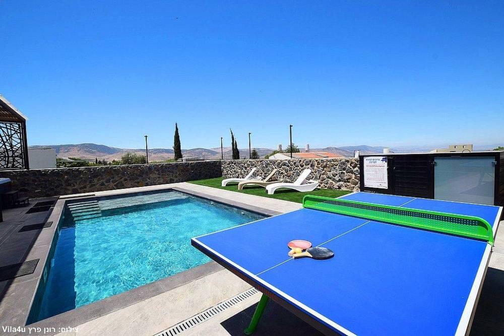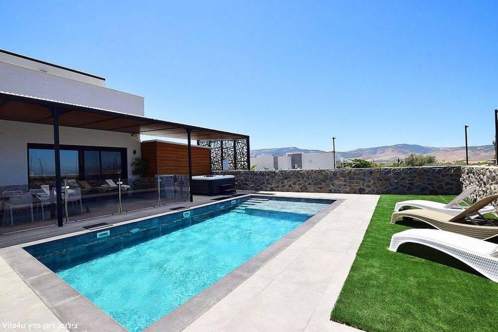 מאיורי ריזורט בגליל העליון – חופשה פרטית מול נוף עוצר נשימה לחרמון ורמת הגולן, בריכה מחוממת, ג׳קוזי ספא ופינות ישיבה חיצוניות - מושלם לאירוח משפחתי וטיולים עם ילדים בוילה סלון מרווח, חדרי שינה גדולים ומטבח מאובזר מבטיחים נוחות ושקט מלא לכל אורח.